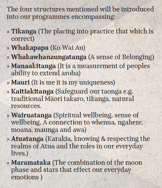 We base all of our activities within the protective korowai of Maramataka (the moon cycle of tangata whenua); and Manakitanga - which means to extend aroha (love and compassion) to others. It is found in acts such as helping a loved one, encouraging one another or even supporting a complete stranger.